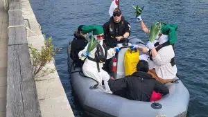 - There are several “leeks” in this boat as members of HMCS Griffon begin to take teams out to the lighthouse (Adam Riley / Acadia Broadcasting)