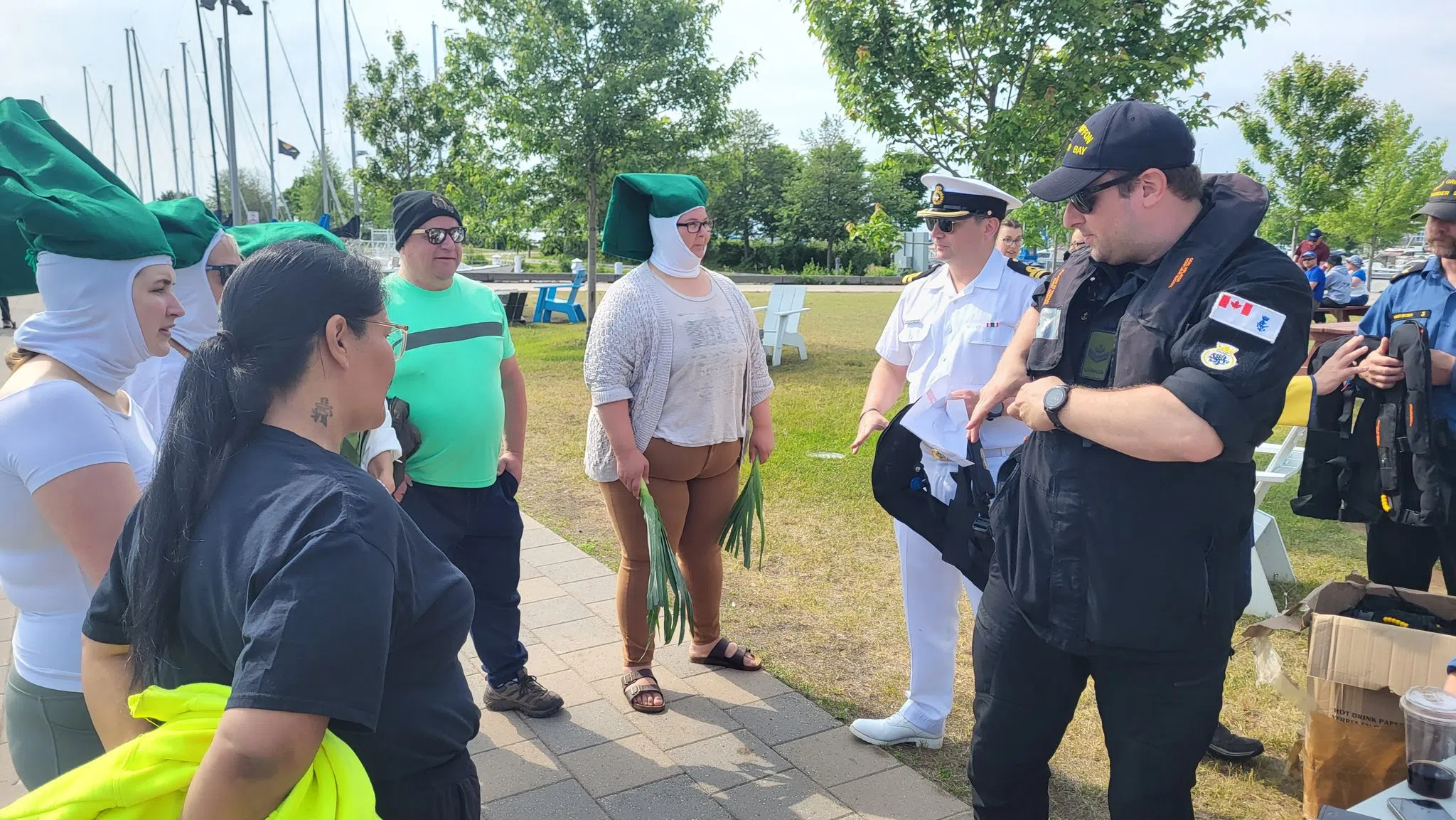 Members of HMCS Griffon go over the safety procedures and how the self inflating life vests operate (Adam Riley / Acadia Broadcasting)