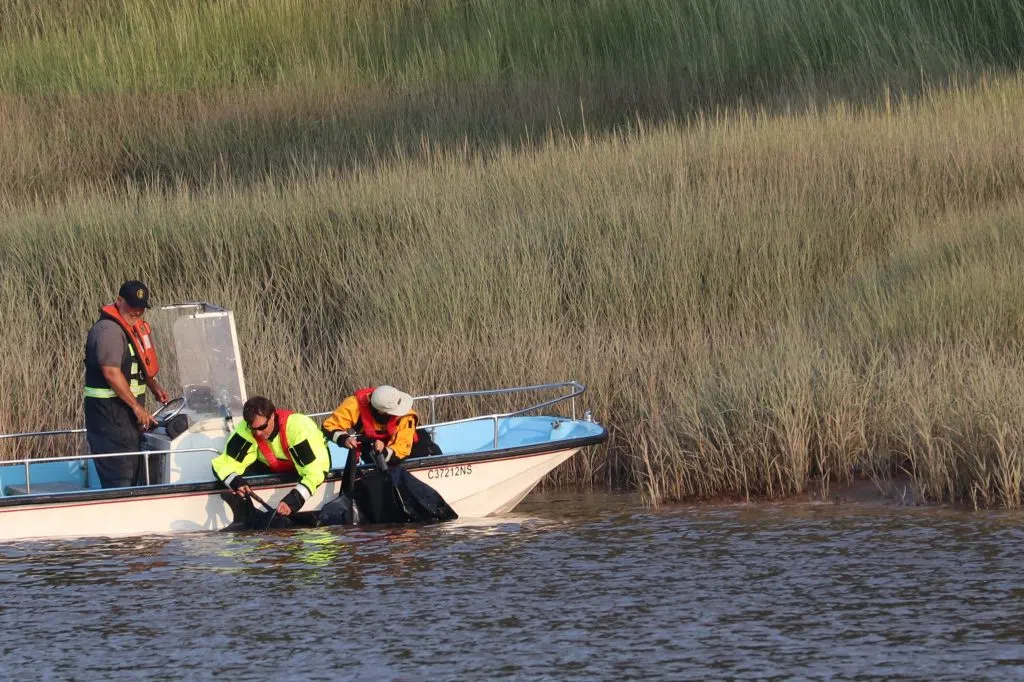 Attachment: MARS Volunteers assisting a trapped Atlantic white-sided dolphins in Canning, Nova Scotia (c) Marine Animal Response Society