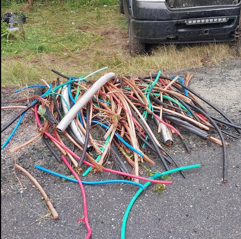 At the scene, officers found a large quantity of copper wire cut into short pieces. In total, 490 kilograms were recovered, along with a small amount of crystal meth.
