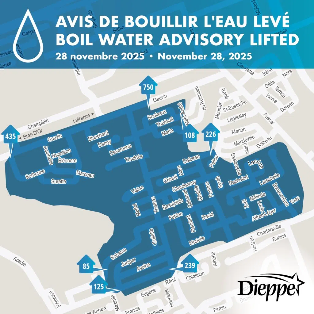 The City of Dieppe says the boil water order issued on Wednesday after a water main break has now been lifted.