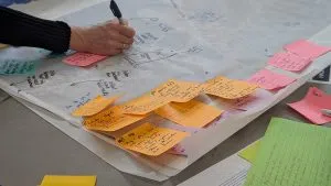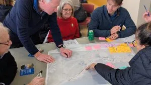 Project leaders presented their key objectives and outlined how they hope the community will participate in the process, providing each table with sticky notes, sharpies, and a map to sketch out ideas.