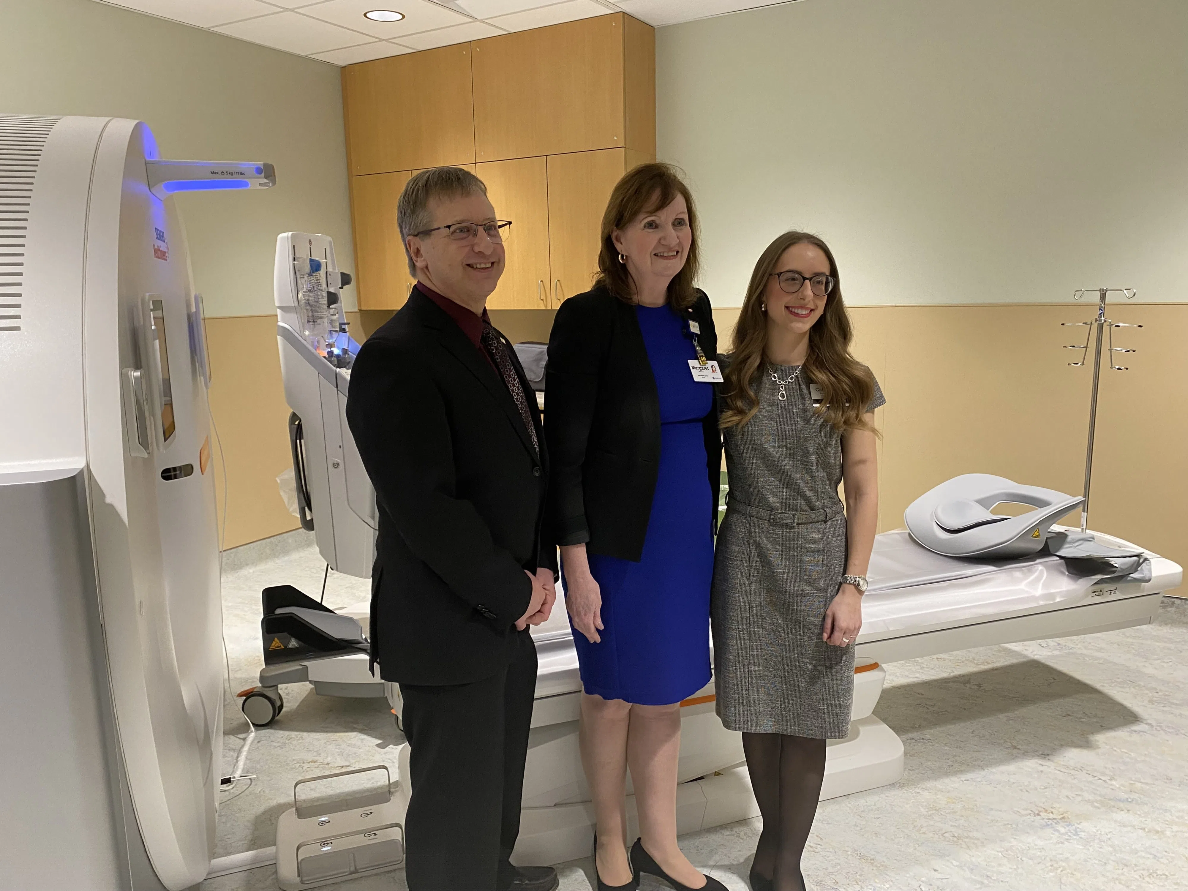 Brad Perry Feb 24, 2025 The new CT scanner at the Charlotte County Hospital in St. Stephen was unveiled on Feb. 24, 2025. From left: Steve Backman, president of the Charlotte County Hospital Foundation; Margaret Melanson, president and CEO of Horizon Health; and Celina Bountalas, director of medical imaging for the Saint John area with Horizon Health. Image: Brad Perry