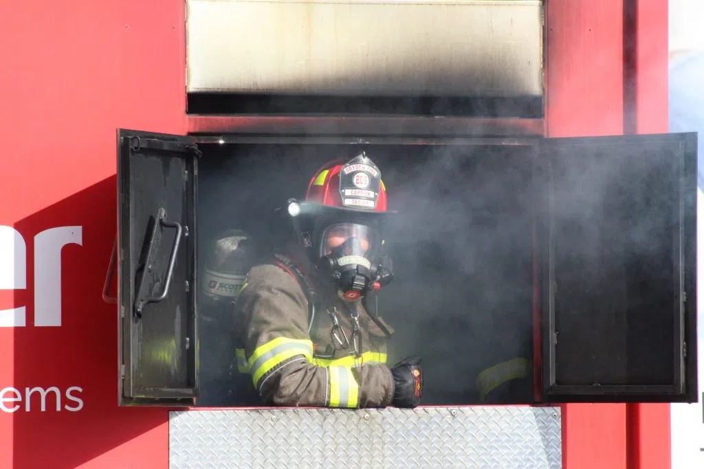 This opportunity marked the first time many with the Dryden Fire Service were able to use the mobile training unit, which brought smiles under the mask to many. (Adam Riley / Acadia Broadcasting)