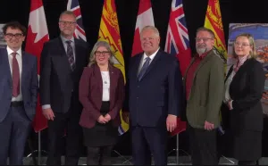 New Brunswick Premier Susan Holt, Ontario Premier Doug Ford, and President and CEO of Port Saint John Craig Bell Estabrooks met in Ottawa today to announce the increase of Ontario goods being exported through Port Saint John in the last year. In 2025, Port Saint John saw a 153 percent increase in goods from Ontario hea...