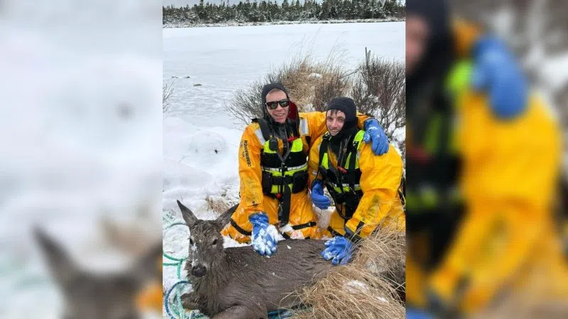 A deer was heroically saved from falling through the ice in Barrington Passage, Tuesday. In a post on social media, Island and Barrington Passage Fire Department says when they got the call, the deer was struggling to survive. DC Devon Waybret and Captain Ghislain Leblanc put on survival suits and life jackets and mana...